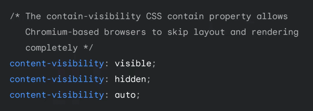 content-visibility 是 CSS containment 的一种扩展能力,允许我们能完全跳过离屏内容的布局和渲染。