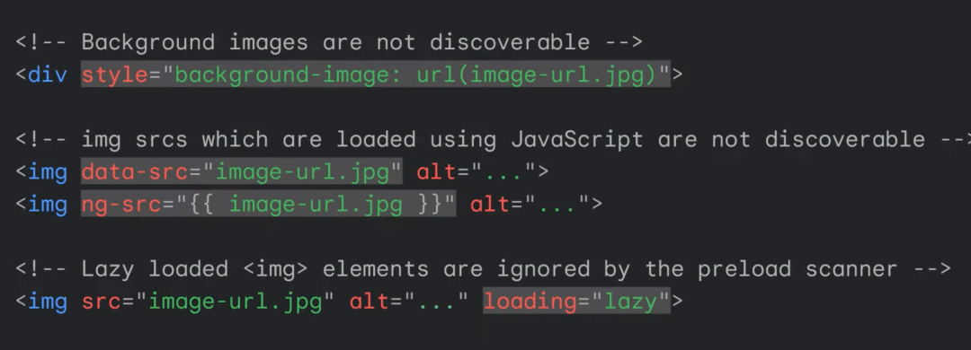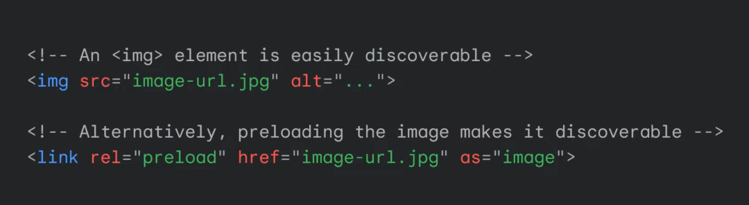 而使用传统的 img 元素或添加预加载链接等方式则可以使图像资源被预加载扫描程序发现,并被浏览器尽早加载。