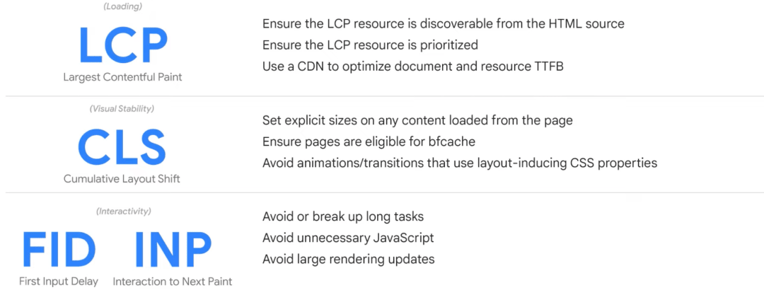 首先,让我们来看看网站最大内容渲染时间(LCP)的建议。LCP 是渲染网页最大内容的时间,相比于 CLS 或 FID,LCP 往往是大多数网站最难以应付的衡量指标。