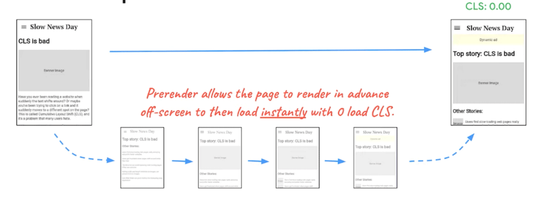 BF Cache 是 Chrome 团队为了让网页浏览更快的正在开发的一系能力之一,这个领域还有一些其他的能力,比如预加载和预渲染也是可以改善网站 CLS 指标的。